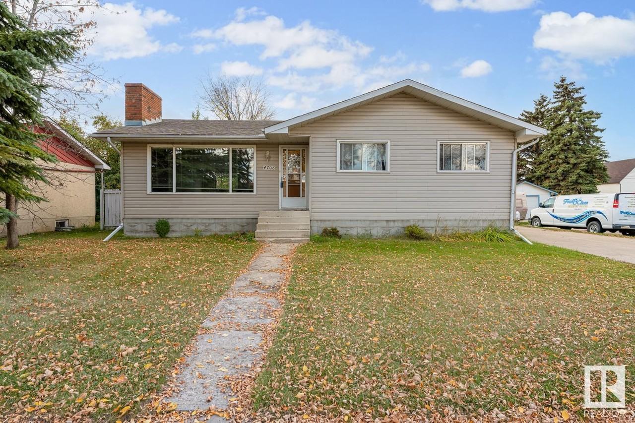 Welcome to your new home! This charming bungalow is nestled in a wonderful neighborhood that's perfect for family living. Comfortable main floor plan featuring a warm & inviting living room with wood feature wall & brick-faced wood fireplace, perfect for cozy evenings. Charming & bright kitchen offers potential for customization & separate formal dining. 5 bedrooms & 2 bathrooms, ensuring plenty of space for everyone. Full basement has been thoughtfully developed & includes a second kitchen, rec room, laundry facilities, an office, ample storage space & cold room. Over the years, the property has seen various upgrades, including some flooring, shingles, hot water tank, high-efficiency furnace & siding. Huge lot is partially fenced & landscaped with mature tree, flower beds, extra parking off back alley & a detached double garage with newer roll-up doors & a concrete front driveway. Great location close to elementary school, swimming pool, parks & shopping. Convenience & Comfort. Utilities not included