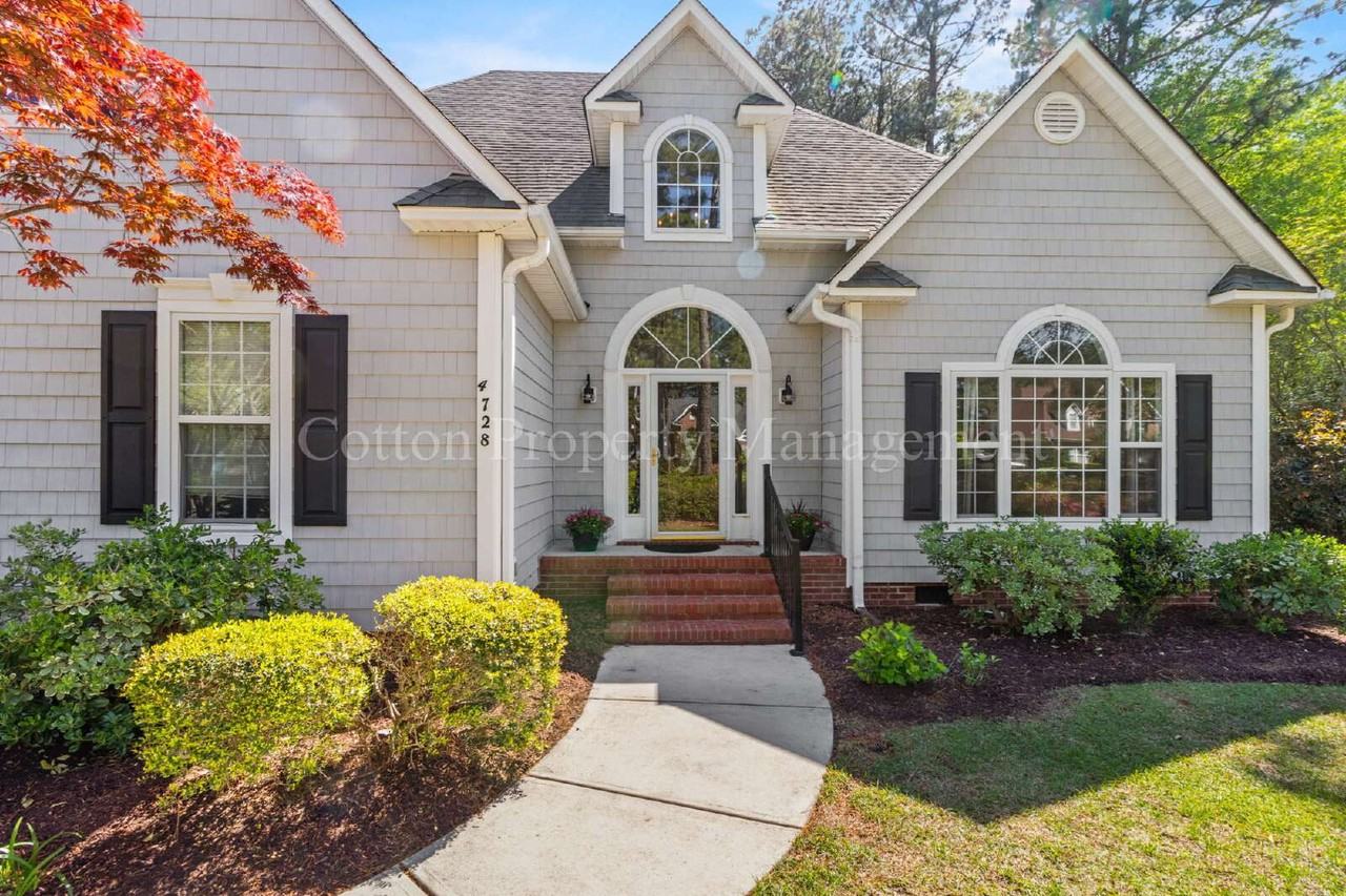 Enjoy a serene and updated lifestyle in this beautiful 2,840-square-foot home, located in Wedgefield at Crosswinds neighborhood. The two-story home includes 4 bedrooms and 2.5 bathrooms, with a downstairs master suite. Updated kitchen for you to can enjoy cooking with granite countertops, a gas range, and a built-in wine cooler. Hardwood floors run throughout the main living areas, which also boast built-in cabinets and a cozy gas log fireplace. The first-floor private master suite features a remodeled bathroom with a walk-in tile shower, a garden tub, a double vanity, and custom closets. Outside has a large, private backyard which includes an oversized deck with mature landscaping, a perfect spot to watch local wildlife. Invisible pet fencing. There is ample storage with a walk-in attic; a side-entry garage is attached. This home is conveniently located, the home is a short 15-minute drive from Wilmington's local beaches and close to shopping areas. Two pet limit with application fee and pet rent. Lawn care is the responsibility of the resident. Professional managed by Cotton Property Management, representing the owner.