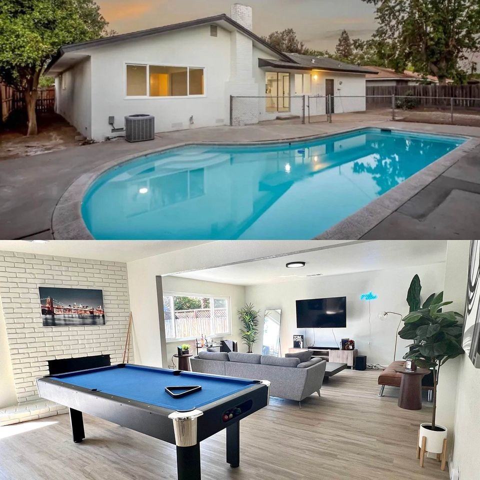 4 bedroom 2 bath house with a pool near Old Fig garden (Shaw & West). Two car garage, pool, laundry. Rent includes internet and ADT security service. Fully furnished rental. The house comes with solar, tenant will pay $475 a month for the electric, gas and water. Tenant responsible for Pool Service.