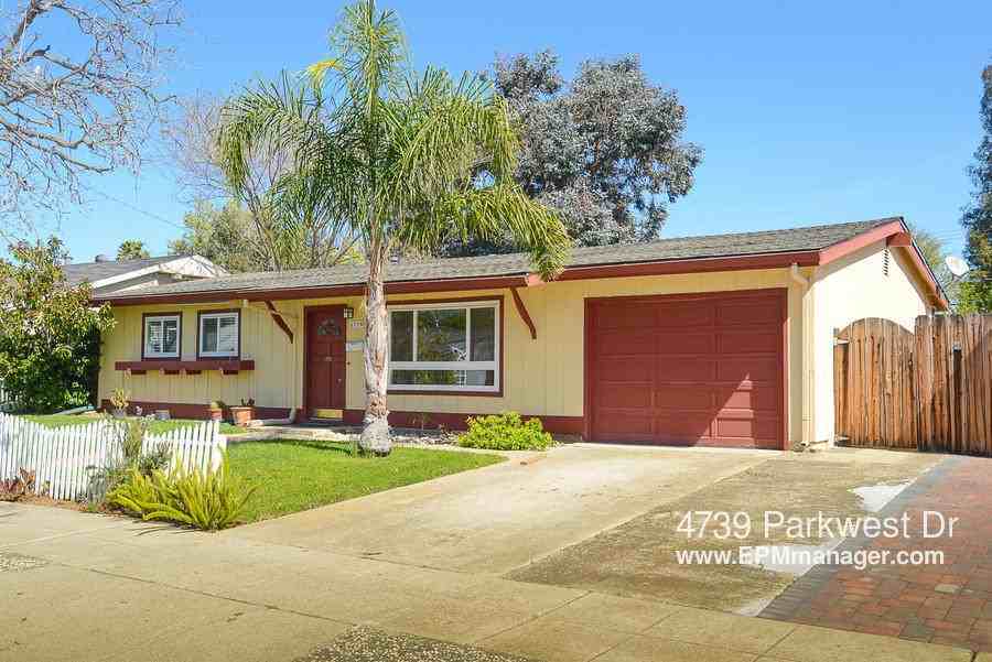 SHORT TERM OR MONTH TO MONTH!! See better photos and SCHEDULE A SHOWING at: http://showingline.com/lc/488d82c05b No, it's not a hyperlink. :-( You still have to copy-and-paste this link into the address bar on your web browser. LOOKING FOR SHORT TERM OR MONTH TO MONTH Walk to Westgate and El Paseo 4739 Parkwest Dr, San Jose, CA 95130 $3,100/mo KEY FEATURES Year Built: 1958 Sq Footage: 1185 sqft. Bedrooms: 3 Beds Bathrooms: 2 Baths Parking: 1 Garage Lease Duration: 1 Year (See Details Below) Deposit: $3,100 Pets Policy: No Pets Allowed Laundry: In Unit Property Type: Single Family House DESCRIPTION This cozy 3/2 home is in a great West San Jose location. Within walking distance to Westgate Mall and El Paseo, and just a few minute drive to Lawrence Expressway and 280. One car attached garage and storage shed in the yard. All new paint and carpets through out. Double doors on master bedroom lead to great yard with patio area. RENTAL FEATURES Living room Dining room Master bath Storage space Range / Oven Refrigerator Dishwasher Garbage disposal Balcony, Deck, or Patio Fenced yard Sprinkler system Double pane / Storm windows COMMUNITY FEATURES Garage - Attached