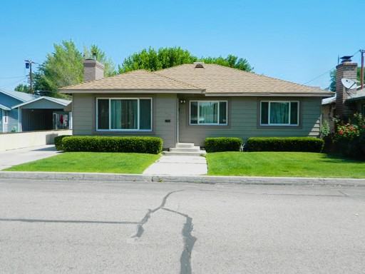 Four bedroom home in town with 2 baths, nice shaded back yard with a play set and patio area. Pellet stove, electric heat and kerosene. Evaporative coolers for the summer and ceiling fans throughout. Includes refrigerator, oven/range, washer, dryer, water, sewer, trash and landscaping. Small pet (