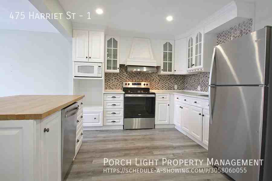 WELCOME to this bright renovated unit ready to be your oasis with: Open concept kitchen living room includes big bright windows Kitchen has stunning tile backsplash, plenty of cabinet space and large island Spacious bathroom is beautiful with modern features and walk in shower Private in suite laundry 2 Bedroom Parking included Shared yard $1695.00 plus hydro. Heat is hot water rads, not electric, and is included in the rent.