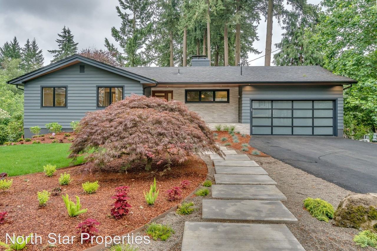 New Lake Oswego Contemporary - This is a full and total renovation of a cool mid century modern home. With outstanding finishes and a peaceful setting, this is easy to call home. Driving up, you will notice the contemporary feel, with outside tilework, a modern garage door and a beautiful concrete and tile entry. Inside are hardwood floors throughout, the kitchen has slabs of quartz countertops, a custom tiled backsplash, stainless appliances, gas range, hood and microwave. The kitchen leads to a large great room that has the living room, sitting area, bar area and dining room. This area also has windows and doors out to the deck as well as a fireplace. There are two bedrooms on this level that share a hallway bathroom with double sinks and a tub/shower combination. There is also a great half bathroom for guests. Downstairs is the spacious master suite that has a door to the back yard. The master bathroom is spectacular, with a big soaking tub, double headed shower and two sinks. There is a large walk-in closet as well. There is another bedroom downstairs, this has a walk-in closet and a hallway bathroom with great tilework, two sinks and a tub/shower combination. A hidden surprise is a quiet den with a fireplace and a door out to a side patio, this is also a perfect office. The home has a two car garage, no pets and no smoking please. Lake Grove Elementary, Lake Oswego Jr. and Sr. High Schools. No Pets Allowed