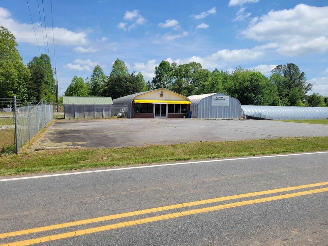 For lease: Main QUONSET dome shaped front building has a center 6 x 7' front desk area, enclosed 8 x 14 office area in back corner, and 5 x 7' half bath across from office, heated and cooled. 3 Greenhouses with doors. Barbed wire fence with 2 sets of double gates encloses main building, carports, shed, and 1 greenhouse. 2 green houses in open field opposite fenced area.