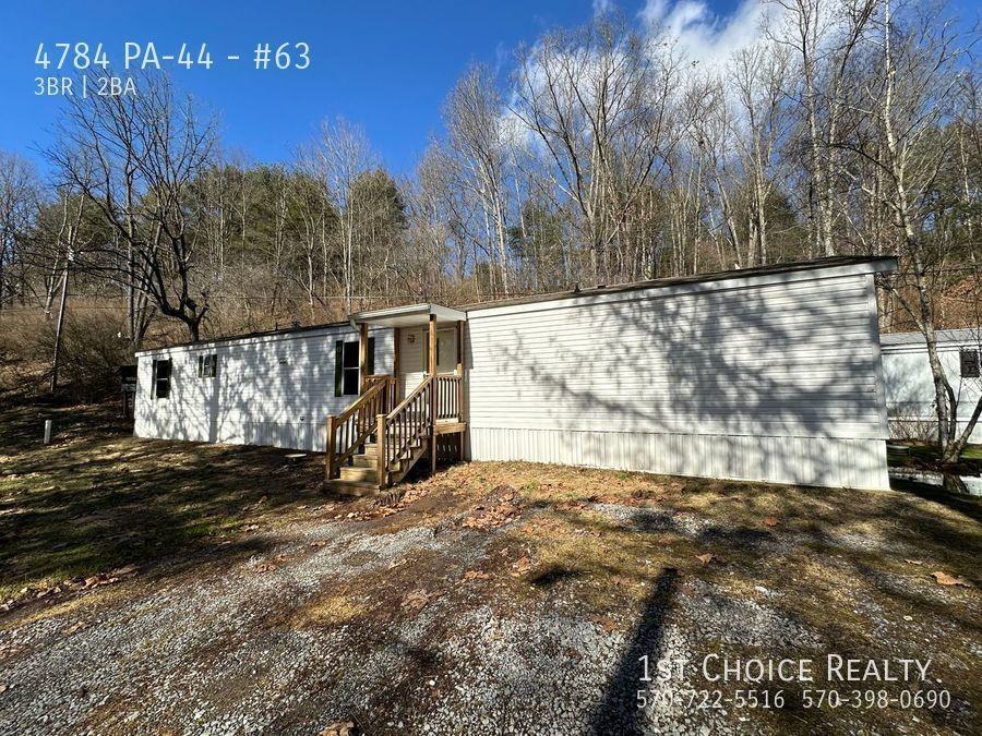https youtu be z8smu8_iN-c?si=HiG-rViqKv-RMudA 3 bedroom 1 1/2 bath single wide trailer in Pine Creek for rent! It has an open living room and kitchen (stove and refrigerator will be installed) with laundry connections and a small back porch. Water, sewer, and trash removal and snow removal are included. Tenants are responsible for their propane heat, electric, and lawn care. Owner will not allow dogs, but will consider up to 2 cats for a qualified tenant with good references. $35 per month, per cat. Beware of online scams and scammers. We will never ask you to send us money via Venmo, CashApp, etc. All correspondence and payments are through 1st Choice Realty. We advise you do NOT speak with anyone who claims to be the owner of the property, no matter how legitimate it may or may not sound. Please call our office directly if you have any questions about this information - 570-398-0690 $10/month will be added to your lease agreement for the mandatory 1st Choice Perks Program, with amazing benefits to our tenants such as home buying assistance, waived and reduced fees and more. Call us for more information about this great program. 570-398-0690 ext. 1.