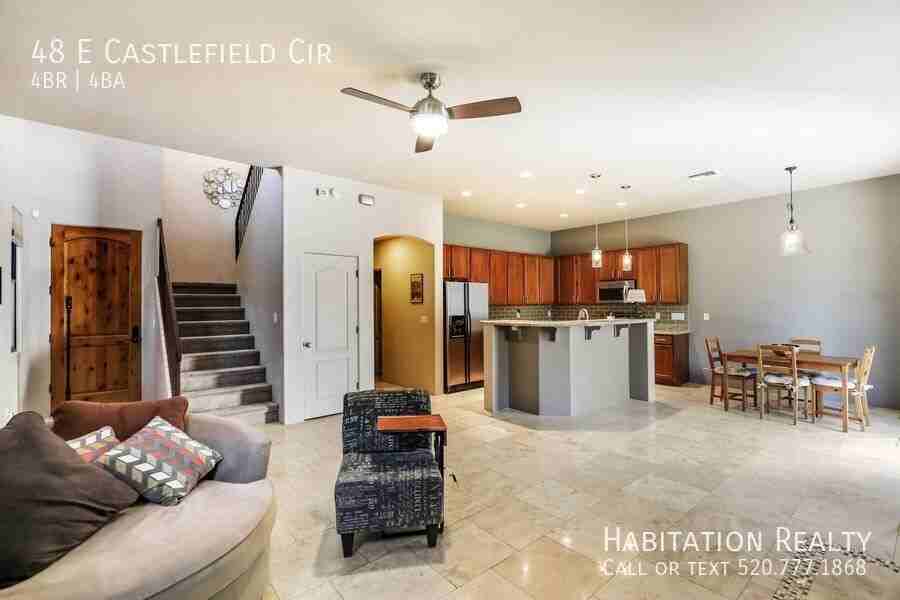 *******We only accept applications at habitationrentals.com******** Nestled in a vibrant community adjacent to the Riverwalk Bikepath, this beautiful home is just north of the University, offering exceptional amenities including a Community Pool, Dog Park, Playground, Ramadas, and beautifully maintained grounds. Every inch of this stunning, contemporary home has been thoughtfully renovated with modern finishes throughout. Renovated tile floors, granite counters, backsplash, stainless steel appliances, and modern light fixtures set the tone, while the open and bright living room with a decorative fireplace and high ceilings flow seamlessly into the kitchen, featuring an island, breakfast bar, and huge walk-in pantry. The main level offers a bedroom with walk-in closet and a beautifully renovated bathroom, while upstairs boasts a spacious laundry room, an additional bedroom, and an incredible primary bedroom with a spa-like bath, dual vanities, and a door to the wraparound patio. Miramonte at the River, often called Croydon Park, is a gated community in north Tucson that blends modern Southwest living with resort-style amenities and an unbeatable location. Enjoy a short walk to the pool or park from this desirable North/South exposure lot featuring green space in both the front and back, giving it a wonderfully private feel. A spacious courtyard entry adds a second outdoor living space, while the location can't be beat: connect to the Loop from Riverwalk, walk to Tucson's best Farmers Market, reach the University in under 10 minutes, and enjoy shopping, LA Fitness, restaurants, and much more all within walking distance. 4Bed/4Bath 2122 sq ft Gated Community Community Pool Recently Renovated Fenced yard Ceiling Fans 2 Car Garage Garage Parking Carpet floors Tile floors Stainless Steel Appliances Dishwasher Microwave Washer/dryer included Refrigerator Stove/Oven Air conditioning Central heat Central Tucson Decorative Fireplace $4292 due at lease signing. This includes a $3692 refundable security deposit, $400 non-refundable cleaning fee, and $250 non-refundable leasing fee. First month's rent due one business day prior to move-in. Monthly charge for electric. Tenants to arrange for water/sewer/trash and gas. Our residents are required to be automatically enrolled in our Resident Benefits Package. The cost of this program is $39/month and includes renter's insurance, identity theft protection, a rewards program, credit score building, and concierge utility transfer service. Well-behaved and loved pets may be considered, with an additional one time $200 fee per pet, subject to owner approval. We do charge a $55 per person application fee, and all potential tenants must pass a credit, criminal, and prior eviction screening. Professionally managed by Habitation Realty. Equal Housing opportunity, of course! https www zillow com view-imx a7f3d6af-52e0-4f56-89df-8855784f2d30?setAttribution=mls&wl=true&initialViewType=pano&utm_source=dashboard 2 Car Garage Carpet Central Tucson Community Pool Gated Community Northern Tucson