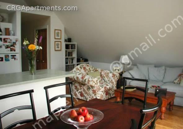 Beautiful top floor two bedroom one bath condo unit in a multi-family house. Open floor plan Kitchen/ living room/ dining room with cathedral ceilings, skylights, deck off the living room, hardwood floors, in-unit laundry, dish washer. Two good sized bedrooms with one a little bigger then the other. Plenty of closet and storage space.