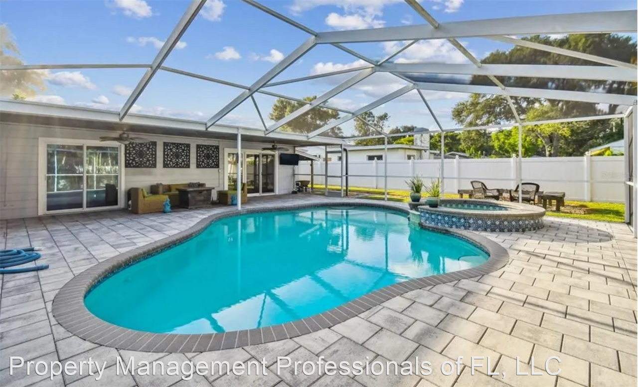 3-bedroom, 2-bathroom Furnished POOL home annual leases only - Welcome home to this beautiful and well maintained Furnished or Unfurnished 3-bedroom, 2-bathroom POOL home located in Bay Pines estates! This home is close to...shopping, restaurants, beaches and more. Drop off your clothes and head to Madeira beach, just minutes away! Relax and enjoy in your backyard oasis featuring a screen enclosure, pool, hot tub and covered lanai, with still plenty of room in your yard to play! This home is conveniently located close to Pinellas Trail and Bay Pines bridge on the trail. The Pinellas Trail is a popular 75-mile multi-use pathway that extends from St. Petersburg to Tarpon Springs, offering opportunities for outdoor activities and recreation. We are offering it furnished or unfurnished and available now on an ANNUAL lease basis. Tenant responsible for all utilities, cable and internet. Lawn and pool service included. Dogs may be okay with approval. Laundry in garage. Call Julie for more information. (727) 440-8108 No Cats Allowed