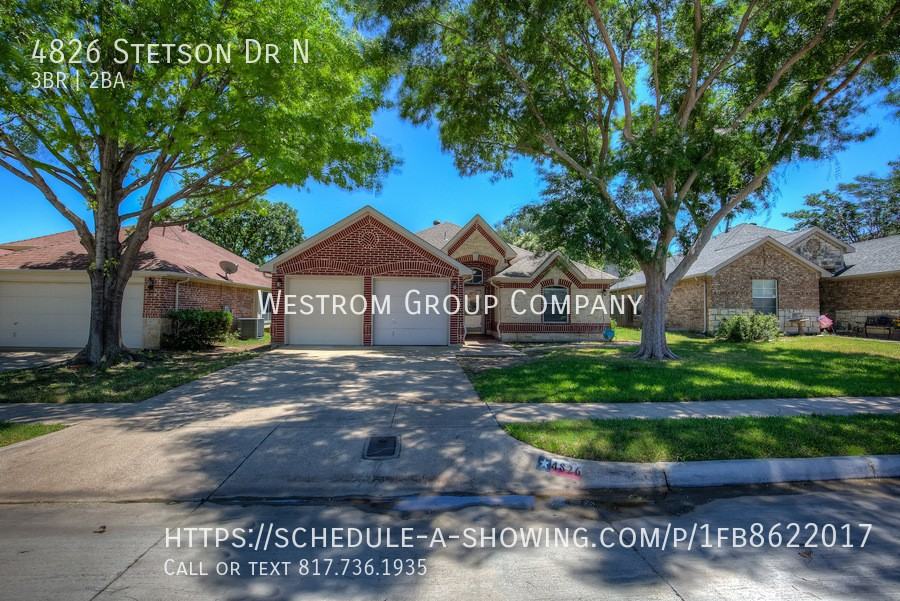 Clean lines and smart layout, this 3-bed, 2-bath single-story home has all the right details in all the right places. The front yard sets the tone before you even step inside. An open floor plan brings together laminate, ceramic, and carpet flooring for a balanced mix of comfort and durability. The kitchen is a total standout: updated white built-in cabinets, granite counters, dual sinks, a kitchen island, electric range, and even a refrigerator already in place. It's ready to handle everyday meals and weekend gatherings. The living room centers around a cozy fireplace, and the breakfast room offers a bright, laid-back space for morning coffee. The primary suite goes all-in with dual vanities, a garden tub, separate shower, and a walk-in closet with real storage space. Two more bedrooms, another full bath with double sinks, and a separate utility room with full-size W/D hookups round out the interior. Out back, the wood-fenced yard gives you privacy and room to make it yours. Double-door, 2-car garage included. No wasted space, no unnecessary extras just a solid, good-looking home that gets it right. To Schedule a Self -Viewing, CALL 817-736-1935 and Follow INSTRUCTIONS. For rental and pet criteria, required documentation and to apply visit www rentdfw net Completion of Pet Screening (Pets and No Pets) go to www westromgroup petscreening com All documents to be emailed to ****. Deposit, Pet Fees, Rents Due within 24 HOURS OF APPROVAL! We do not advertise on FB Marketplace or. All Westrom Group residents are enrolled in our RESIDENT BENEFIT PACKAGE (RBP) $45.95/MO - Includes renters insurance, HVAC air filter delivery (for applicable properties), credit building to help boost your credit score with timely rent payments, $1M Identity Protection, move-in concierge service making utility connection and home service setup a breeze during your move-in, our best-in-class resident rewards program, and much more! More details on www rentdfw net - Screening Criteria and Residents Benefit Package page on our website. Disposal Pets Allowed W & D Connection