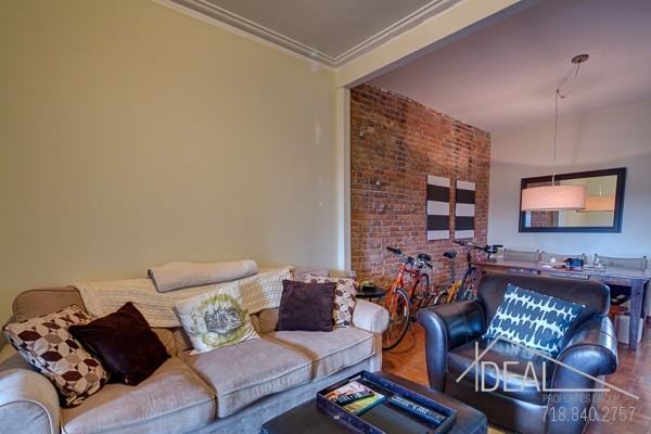 This open and sunlit 2.5 bedroom in South Slope boasts a truly spacious living area, 2 large bedrooms, plus one small office/playroom area. The separate kitchen is also quite large and gets ample eastern sunlight. Exposed brick in the living room offers charm and warmth. Just at the end of the 7th Ave strip of restaurants and bars, the apartment has the best of both worlds- on a quiet block but a stone's throw from the heart of it all. Its also 3 blocks from the southwest corner of Prospect Park. Easy access to F/G/R trains.