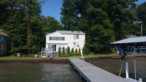 Great two level home with two bedrooms, large living room and eat-in kitchen. Beautiful views of Seneca Lake from almost every room. Spacious deck with retractable awning overlooks large yard with permanent dock and adjustable boat hoist. Home is FULLY FURNISHED and includes laundry room accessed from outside, charcoal grill, and outdoor furniture. $850 per month. Tenant pays ALL utilities including gas/electric, trash removal and water. Rental term from October 1 through May. Pets negotiable with additional deposit.