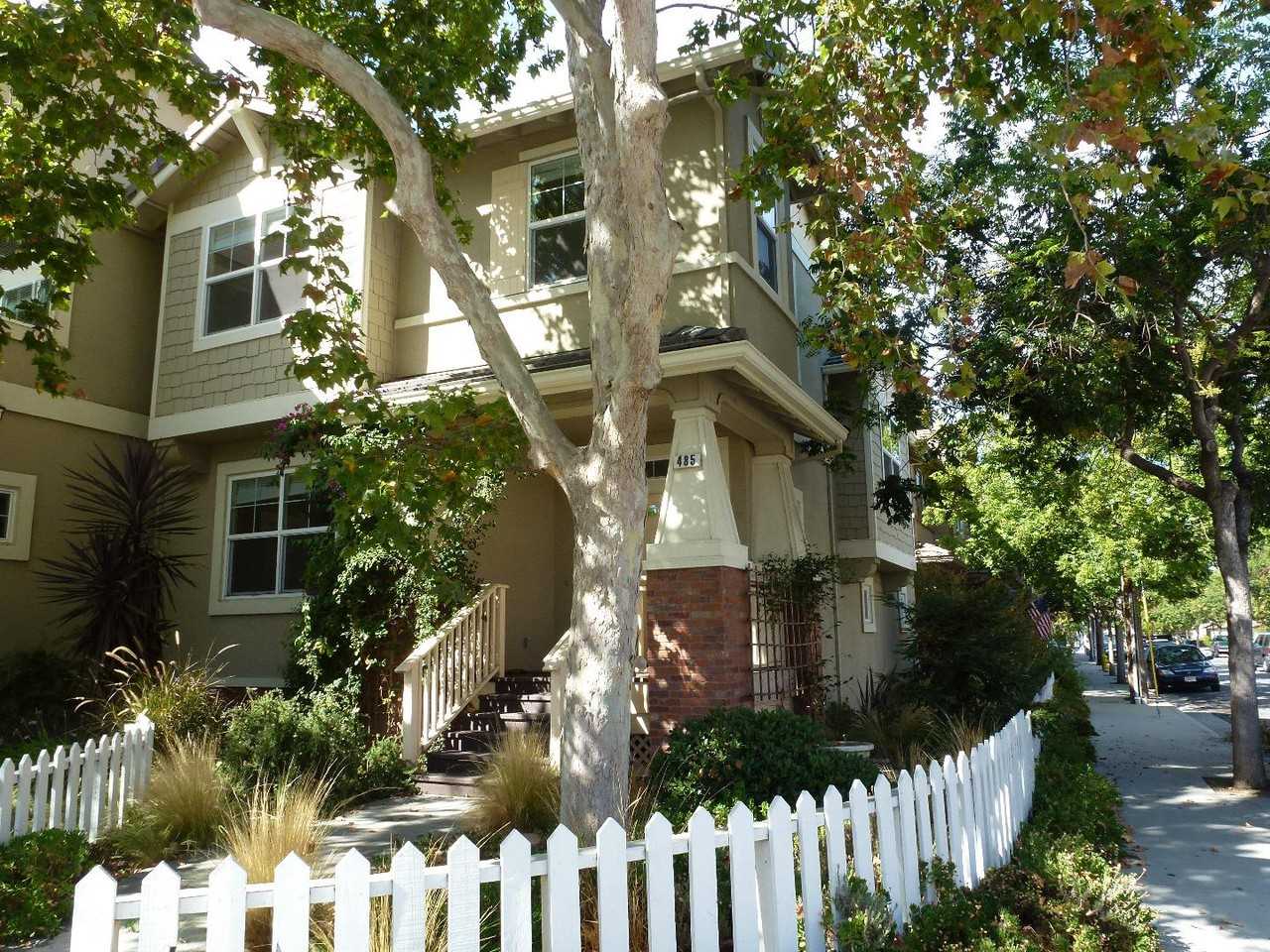 This 2 large bedroom + office corner townhome has natural light from all 4 sides. Approx 1,496 SF. Recently remodeled custom kitchen w/ maple cabinets and double oven. Open kitchen w/ solid surface and beech countertops. High ceilings throughout w/ a great room vaulted ceiling over hickory hardwood floors. Home also has a comfortable balcony and an oversized 2 car attached garage which provides additional storage space. Just 2 blocks to the light rail station and 3 short blocks to the heart of downtown Campbell.