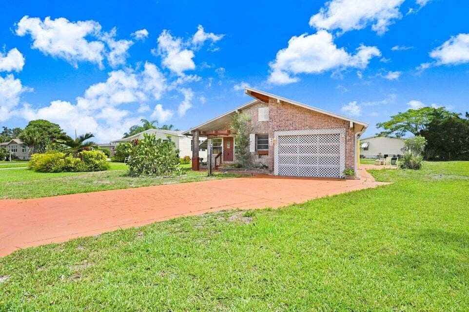Charming 3 bedroom 2 bath brick home, located on the main street of Barefoot Bay! You will have an incredible view of the lake across the street and no homes blocking your view from your living room. Ideal location by the main pool, grocery store and restaurants. Very active community, golf carts are the main source of transportation as almost everything you need can be found on-site. Many amenities including golf, tennis and 3 separate heated pools. The community also features a fishing pier along with deeded beach access. Many activities including cards, bocce ball and live bands! Come enjoy resort style living!