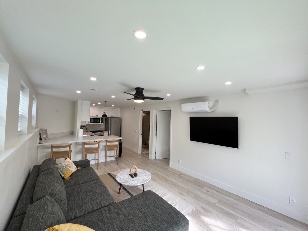 This unit comes fully furnished, with all utilities paid-just bring your bags! Fully equipped kitchen with quartz countertops and bar seating-new stainless steel appliances including gas range and dishwasher. Luxury bathroom with soaking tub and walk-in shower. Bedroom with queen size bed and large walk in closet with ample storage. Living room filled with natural light from the oversized sliding door accompanied by a sectional with storage chaise and pull out couch. 55 smart tv and access to high speed internet. Bedroom and living room with mini split hvac. Shared outdoor space consists of a large patio with secluded canyon views, outdoor dining, fire pit area with lounge furniture, herb garden and yard with new sod. Outdoor access to designated laundry room with brand new washer/dryer. Ample street parking, close to many hospitals, military bases, and within 15 min to downtown/beaches.