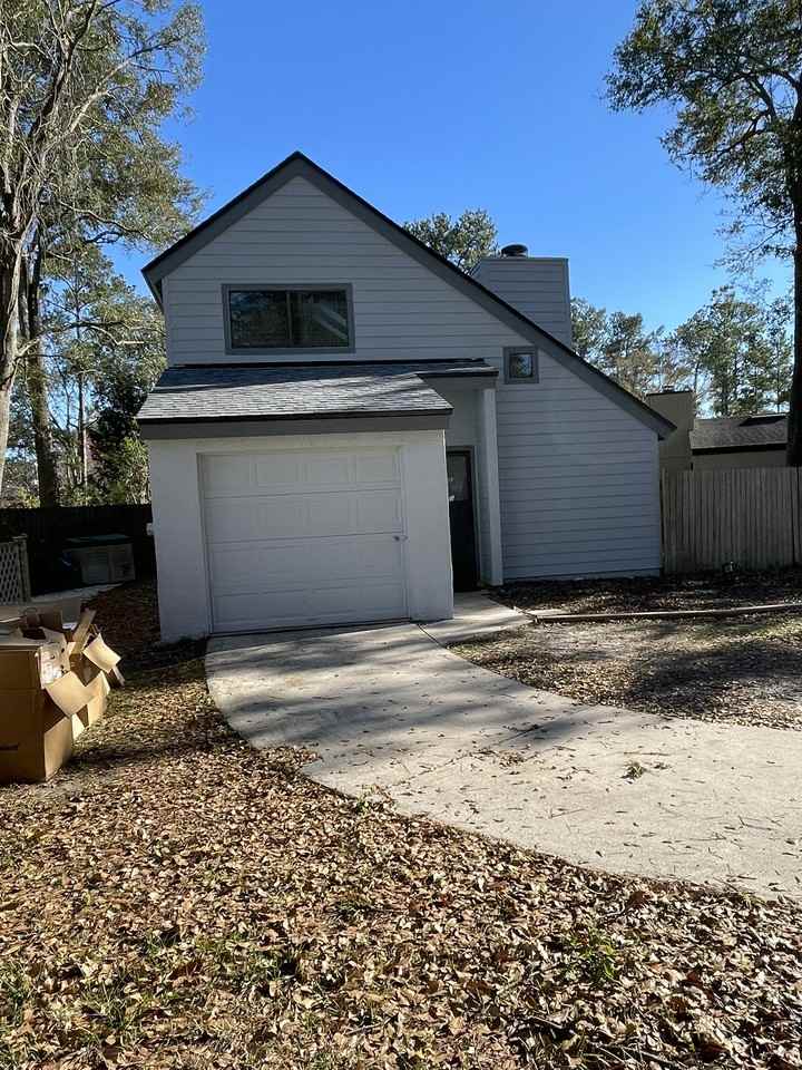 The home entry way opens onto a great room with 2 story white stone fireplace. Available as soon as Nov 1, 2024. Move in ready. Access to the large 2nd story Master Suite is via staircase that winds around the fireplace. The suite includes large bedroom, double closet, tiled bath and separate sitting area overlooking the great room. The sitting area includes 2 skylights with remote controlled solar black out shades so you can choose the amount of light you want to let in. The cozy kitchen includes a pantry, range with self clean oven, an energy saving dishwasher, garbage disposal and refrigerator w/ice maker. Great room and 1 bedroom have vinyl plank flooring and each has direct sliding glass door access to the deck in the fenced back yard. The fenced back yard includes a 300 sq foot garden area. Perfect for growing your own veggies or fruits. The home was originally built as a 2/2. Subsequently, the small 1 car garage was converted into a 3 rd bedroom/study. Approximately 30 sq ft was left behind the garage door for yard tool storage. Recent renovations include new plumbing fixtures throughout, renovated MB tub & surround, renovated downstairs walk in shower area, new carpet, new countertops, refinished cabinets, fresh paint, new siding, new roof. A must see! Call for an appointment