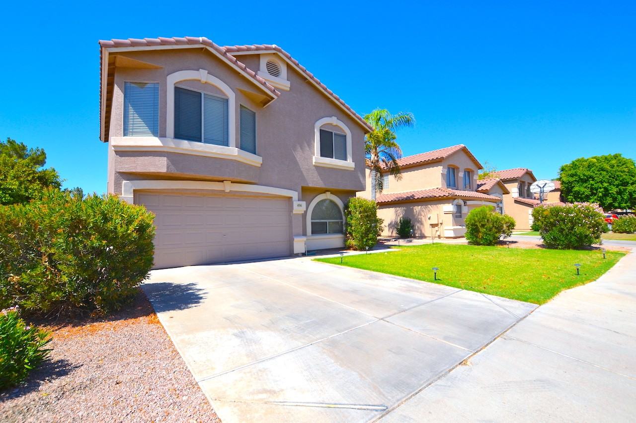 Welcome to an adorable and affordable 3 bed./2.5 bath home located near freeway US-60, Sunsplash/Golfland AZ, Neely Riperian Reserve, AMC movie theatre, entertainment, shopping, and dining! Green grass front yard, 2 car garage, and yard space between surrounding neighbors. You will LOVE the beautiful wood flooring throughout, soft neutral paint, and blinded windows to keep out the AZ heat. Living room has open side spaces near kitchen and dining area for great entertainment spots! Kitchen is fully equipped with stainless steel appliances, wide counter tops, and pantry for extra food storage. Upstairs bedrooms have good size closet, wood flooring, similar light fixtures, and are close to one-another. Master suite has walk-in closet and bathroom that features wide mirrors, double sinks, and large shower. Relax under the wide covered patio on your weekends in your high fenced private backyard. This place is a steal! CALL NOW!! On Q Property Management Leasing Team 480-696-6776