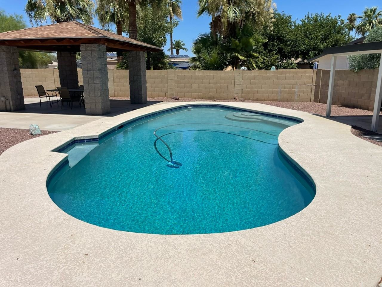 Rent $2,750 / Monthly Fee $112 / Security Deposit $2,750/ Move in Fee $550 / Pet Deposit: $250/pet / Annual Pet Fee: $100 This stunning remodeled 3 bed, 2 bath home in desirable Litchfield Park. Fully remodeled kitchen is a chef's dream, with top-of-the-line appliances, leathered quartzite waterfall countertops, and a wet bar for entertaining. Open-concept living space flows seamlessly into the kitchen, making it the perfect spot for family gatherings or hosting guests. Custom bathrooms with high-end finishes and modern design elements. Featuring a flex space that can be used as an office, workout area, or guest room. Pebble-tec pool is a perfect pairing to the outdoor gazebo. A short distance to the upcoming Litchfield Square development, which promises to bring even more amenities and entertainment options to the area. A perfect combination of modern luxury and convenient living. Rent includes weekly pool service. Owner is willing to consider pets, call for details.