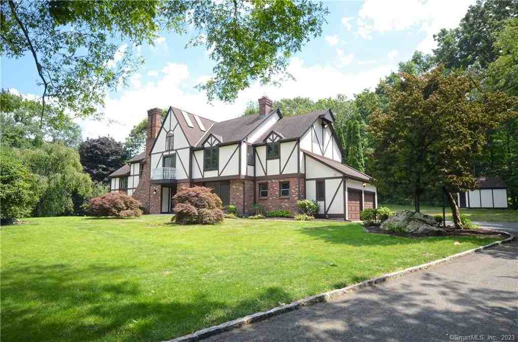 Welcome to this recently renovated Tudor-style home, nestled on approximately 2 acres of picturesque land complete with a private pond. The 2-story foyer welcomes you with natural light pouring in through the skylights, while newly installed hardwood floors create an inviting ambiance. The living room, adorned with built-ins and a fireplace, effortlessly connects to the updated kitchen, which boasts sleek stainless steel appliances. A highlight of this home is the glass-enclosed sunroom, providing a year-round oasis. The main level also features a private office, inviting dining room, additional living area complemented by the second fireplace, and a mudroom connected to the 2-car garage. Upstairs, the primary suite awaits, featuring a walk-in closet and updated ensuite with brand new shower, smart mirror, and luxurious soaking tub. 3 more bedrooms, renovated full bath, and new laundry room complete this level. A full, unfinished basement and spacious shed in the backyard provide ample space for storage. With its timeless Tudor-style charm, recent renovations, and expansive lot, this home truly stands out. Don't miss the chance to experience the perfect fusion of classic elegance and modern updates.