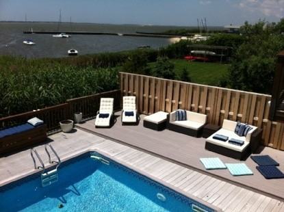 Enjoy your August vacation in this sunfilled 4 bedroom, 4 bath home on the open bay. The open floor plan features a 180 degree view of Moriches Bay. The spacious deck surrounding the heated pool is great for entertaining or relaxing with family and friends.