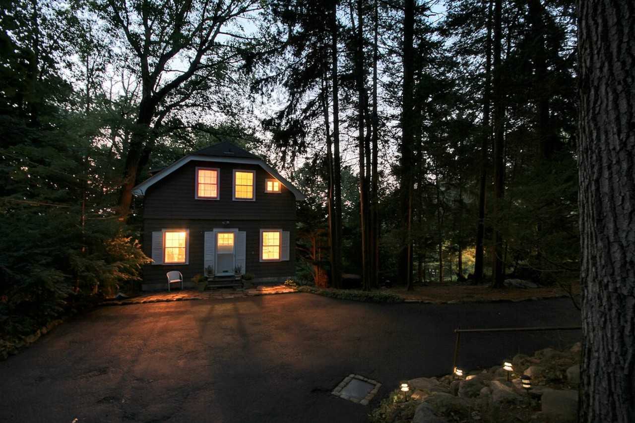 Lovely two bedroom carriage house with rock garden nestled in pines. Panoramic views and spectacular sunsets. Desirable community with good schools. Convenient to NYC transportation. Very private setting.