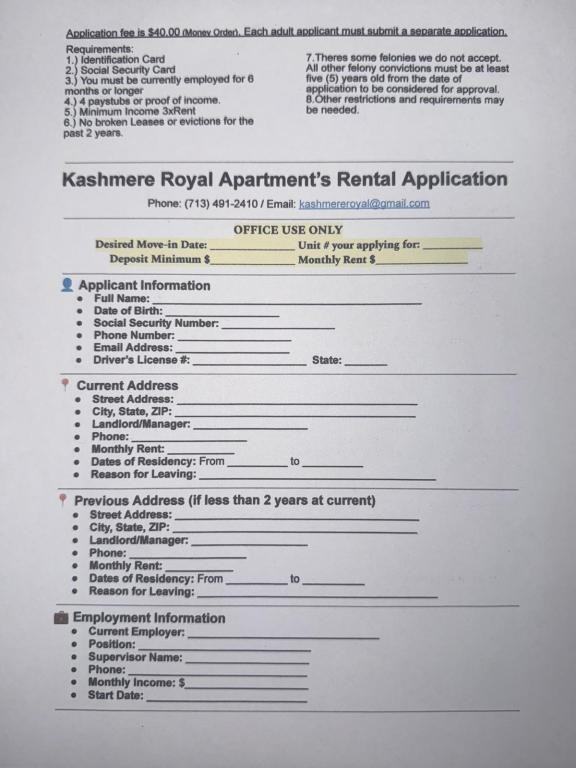 Discover your next home with Kashmere Royal Apartments! We offer affordable apartments, duplexes, and single-family homes for rent in five convenient locations throughout the Kashmere Gardens area (77026). All our APARTMENTS come with all utility bills included, and our properties are located just minutes from LBJ Hospital and major freeway 610, making your commute a breeze. Enjoy peace of mind with an onsite manager, and rest easy knowing we maintain a pet-free environment. Hablamos espaol! Call us today at 713-491-2410 to schedule a tour and find the perfect home for you. *Leasing Office location: 5701 Lockwood dr. Houston TX 77026* *Housing Assistance Applicants are welcome**Housing Assistance Applicants are welcome* **Internet special** Ask about our $500 Internet Move-In Special!! Descubre tu prximo hogar con Kashmere Royal Apartments! Ofrecemos apartamentos, dplex y casasitas en renta en cinco ubicaciones convenientes en el rea de Kashmere Gardens (77026). Todos nuestros APARTAMENTOS incluyen todas las cuentas de servicios en la renta. Nuestras propiedades estn ubicadas a pocos minutos del Hospital LBJ y la autopista principal 610, ideal para tu rutina diaria. Contamos con administrador en el lugar y mantenemos un ambiente libre de mascotas para mayor tranquilidad. Hablamos espaol! Si no tiene licensia no hay problema Llmanos hoy al 713-491-2410 para programar una visita y encontrar el hogar perfecto para ti. Pregunte Por Janet para informacin en espaol. *Ubicacin de la oficina de arrendamiento: 5701 Lockwood Dr. Houston, TX 77026* *Su pasaporte e identificacin de su Pas es aceptado* *Solicitantes de asistencia para vivienda son bienvenidos* **Oferta especial de Internet** Pregunte por nuestra oferta especial de $500 por mudanza con Internet!
