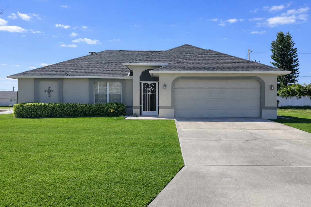 Vouchers Accepted. 3-bedroom, 2-bath home offering 1,479 square feet of living space, situated on a desirable corner lot on a quiet street. This property features a spacious 2-car garage and a large backyard, perfect for outdoor enjoyment, entertaining, or additional storage needs. Enjoy a completely tiled interior, providing durability and easy maintenance, plus a laundry room with washer and dryer included. Relax year-round with a generous yard, a screened lanai, and a screened front entry—allowing you to open the home and enjoy Florida’s seasonal breezes. Conveniently located near Del Prado Blvd. New photos coming soon—home interior is being painted. Pets considered with separate deposit. Courtesy of:John AnnunziataEasy Realty
