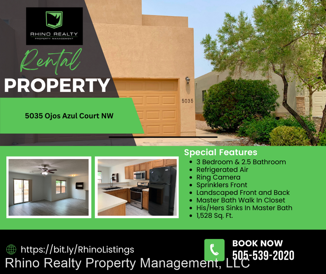 Exquisite 3 Bedroom, 2.5 Bath Home In The NW! Available Now! - Located in the La Luz Del Sol neighborhood, this 3 bedroom, 2.5 bath is centrally located on the westside for easy access to central Albuquerque via I-40, Montano, or Paseo. Front door Ring camera code to be set by tenant. Existing flat screen wall mount in living room. Beautifully landscaped backyard. Washer & dryer included. Andalucia Park, Montano West Park, and Petroglyph National Monument Visitor Center are not far. Close businesses, shops, and restaurants have Joy Spa & Nails, Armando's Hair Salon, Jinja Bar & Bistro, CAT Sigalas Martial Arts & Boxing, US Eagle Federal Credit Union, Rusty Taco, and Kung Fu Tea. Nearby schools include, Chaparral Elementary, L.B. Johnson Middle, and Volcano Vista High. Please call 505-539-2020 to schedule a viewing! Utilities: Resident is responsible for all utilities. PNM & NM Gas in resident's name. Resident pays water on portal. Pet Policy: Cats & Dogs allowed 30 lbs or less $300 non refundable pet fee Limit 2 Pets Vehicle/Parking Policy: Limit 2 Vehicles Not assigned Please call 505-539-2020 to schedule a viewing!