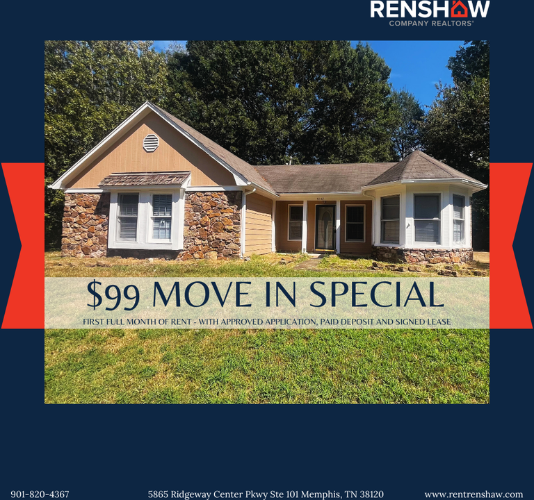 INCENTIVE: $99 Move in Special - First Full Month - with Approved Application & Paid Deposit! Welcome home to the charming neighborhood of Mallard Pint in East Memphis. This gorgeous property features a grand foyer and large living room, complete with a decorative fireplace. Three spacious bedrooms featuring carpet and large closets. Master suite includes master bath. Kitchen is bright with an eat-in dining room. Range provided. Schedule an appointment today! Pets are negotiable with a $250 non-refundable pet deposit and a $25 monthly pet fee (per pet). Se habla espanol. All Renshaw Company residents are enrolled in the Resident Benefits Package (RBP) for $35/month which includes liability insurance, credit building to help boost the residents credit score with timely rent payments, up to $1M Identity Theft Protection, HVAC air filter delivery (for applicable properties), our best-in-class resident rewards program, and much more! More details upon application. For more rental listings, please visit rentrenshaw com To schedule a showing click this link: https app tenantturner com listings renshawcompanyrealtors