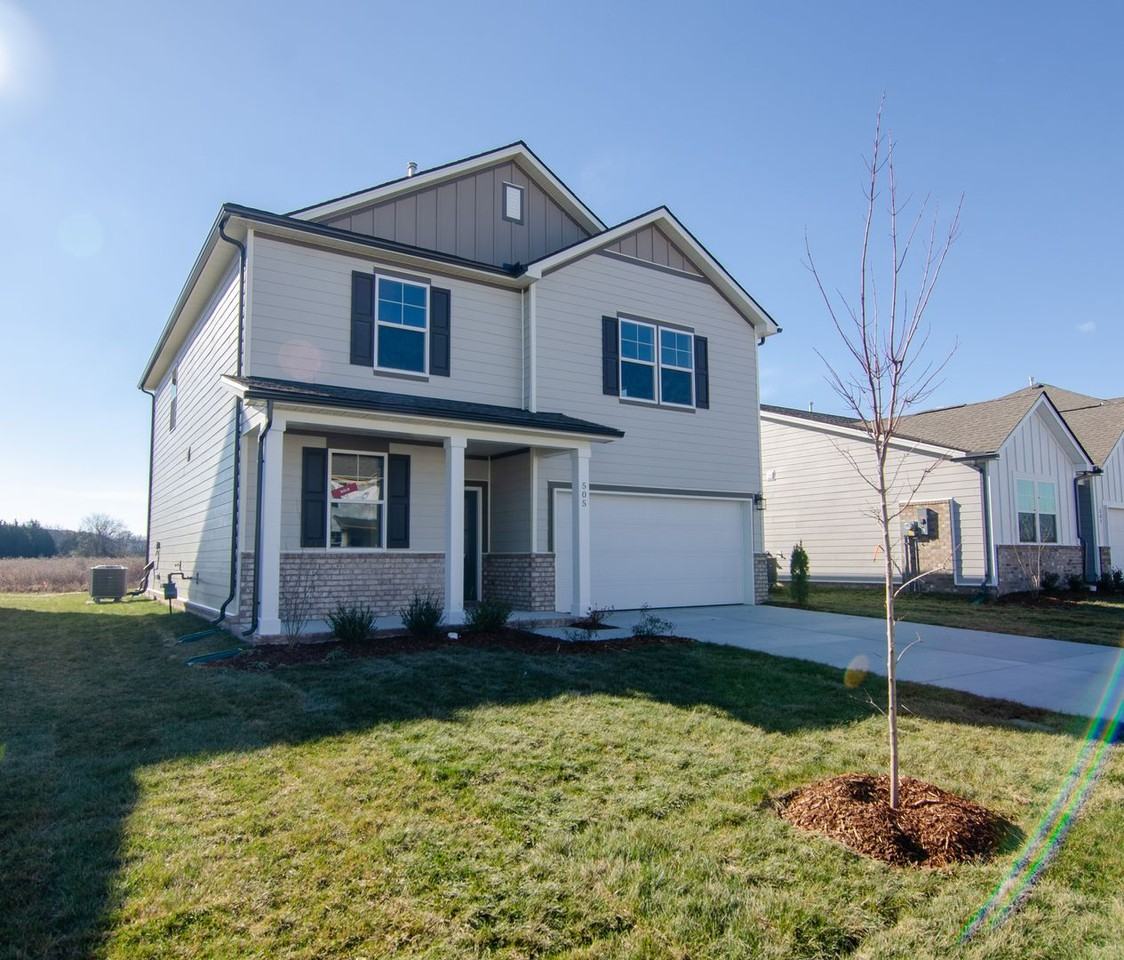 This brand new build 4-bedroom, 3-bathroom home offers both style and functionality, with a first-floor guest bedroom and full bath. The kitchen features stainless steel appliances and sleek granite countertops, making it the perfect space for cooking and entertaining. The wide-open great room with an electric fireplace and vinyl flooring throughout the main level provides ample space for relaxation and gatherings. Upstairs, you'll find 3 additional bedrooms, including the luxurious master suite, along with 2 full bathrooms and a convenient laundry room includes washer and dryer. A large loft space off of the two spacious secondary bedrooms offers endless possibilities for use. The blinds are being installed, ceiling fans throughout are installed, and backyard will be fenced shortly. Dog may be considered on a case-by-case basis, with a non-refundable pet fee.