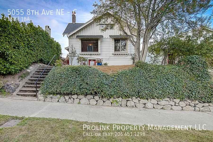 5055 8th Ave NE, Unit C, Seattle, WA 98105 Fall Prelease - Available 9/07! Located near UW campus and U Village! Please email to schedule tour or for more pictures/information! Cozy, cottage-like 1BR/1BA daylight basement in well-maintained 3-unit building, close to UW campus and U Village! Partially-furnished with living areas, a Kitchenette, and laminate floors in Living Room/BR! Furnishings include the following only: - Kitchen/Dining Area: Dining table, 4x chairs - Living Area: Sofa, coffee table, desk, and chair - Bedroom: Bedframe (no mattress), night stand, wardrobe - Plus an additional wardrobe! Conveniently close to public transit, U-District shopping and restaurants, and local amenities (green spaces/parks, library and YMCA)! Gas heating. Unit also includes: Double-paned windows! Access to shared on-site Laundry Room! One FREE off-street parking stall! * Listed rental rate includes charges for the reasonable usage of standard water/sewer/garbage/electric/gas services by one adult occupant only; Tenant is responsible all other in-unit utilities (Internet/cable) * Unit C (daylight basement), 450sqft, $1,180.00/mo: 1BR/1BA/Kitchenette/Living Area/1 uncovered Parking (complimentary free parking!) * See More Pictures: https photos app goo gl UzqxFxRdgQU41kUV9 * The information above has been given to us by the Owner or sources that we deem reliable. We have no reason to doubt its accuracy, but we do not guarantee it. Prospective tenants should carefully verify all information contained above * Available 9/07 * No Smokers, No Pets * Terms: Minimum 12 months; NO summer-only, short-term, or month-to-month leases. 1st Month's Rent and Last Month's Rent due at lease-signing; refundable Security Deposit equaling half of one month's rent due at start of lease * Satisfactory credit check, background check (where applicable), and rental references required for all applicants and expected co-occupants aged 18 and over; non-refundable application fee (as charged by screening agency) is $45.00 + tax per applicant * No deposits accepted until application is processed and approved * Leased by Prolink Property Management, LLC, 14670 NE 8th St, Ste 168, Bellevue, WA * Equal Opportunity Housing: We are pledged to the letter and spirit of U.S. policy for the achievement of equal housing opportunity throughout the Nation. We encourage and support an affirmative advertising and marketing program in which there are no barriers to obtaining housing because of race, color, religion, sex, handicap, familial status, or national origin.