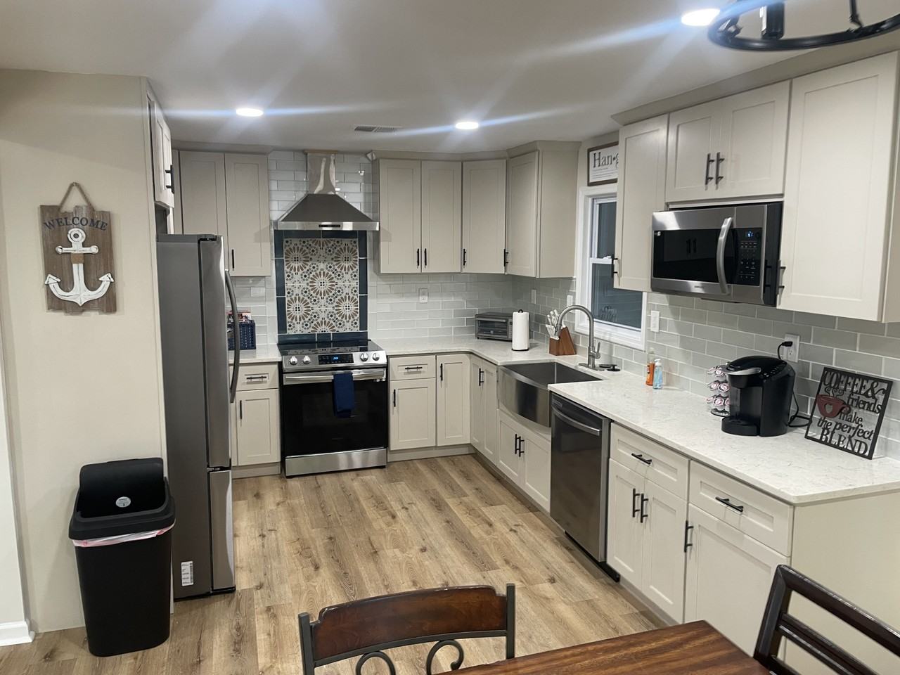 Gorgeous fully remodeled beach bungalow. Enjoy a stylish experience at this centrally-located home. Atlantic Beach's newest gem has finally arrived. Steps to the beach, roomy, comfy and close to all amenities you could ever need. This 3 bedroom, 1 1/2 bath cozy home has open floor plan, beautiful kitchen equipped with everything you would want. Granite counters, stainless steel smart appliances, farmhouse sink, etc… Wonderfully decorated home. Back private deck with gas fire pit and grill.