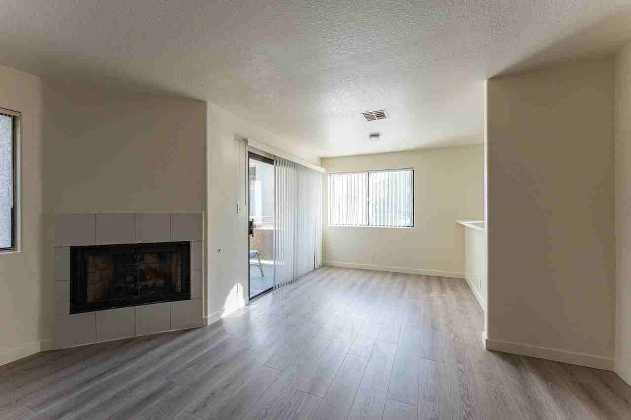 Beautifully updated 2-bedroom, 2-bath condo located in the gated Vizcaya community in Southwest Las Vegas. This unit features brand new laminate flooring throughout, fresh paint, and a bright open layout with plenty of natural light. Spacious living area with fireplace and direct access to a private covered balcony. Kitchen offers ample cabinet space and a breakfast bar overlooking the living room. Separate laundry area with washer and dryer included. Primary bedroom is generously sized with a private bathroom, and both bathrooms feature updated finishes. Community offers resort-style amenities including pool, spa, fitness center, tennis courts, and clubhouse. Conveniently located near shopping, dining, the Las Vegas Strip, and Spring Valley Hospital.