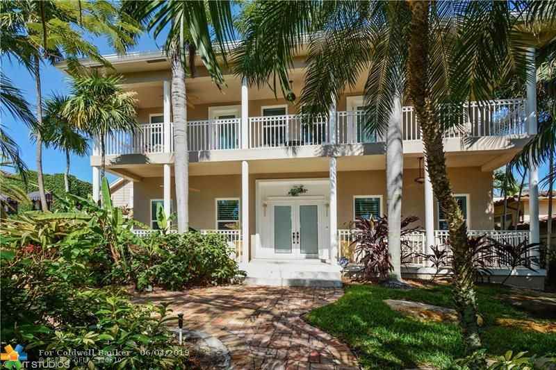 Updated coastal style home w/75' of water frontage, no fixed bridges, quick and easy ocean access. Marble and hardwood floors, grand staircase w/3rd story skylight, double sided fireplace, 1st floor bedroom, spacious master suite w/covered balcony w/spectacular water views. All new hi-impact windows and doors. Separate updated guest house w/full bath and laundry. Heated pool w/spa Fully fenced w/electric gate and four car motor court.