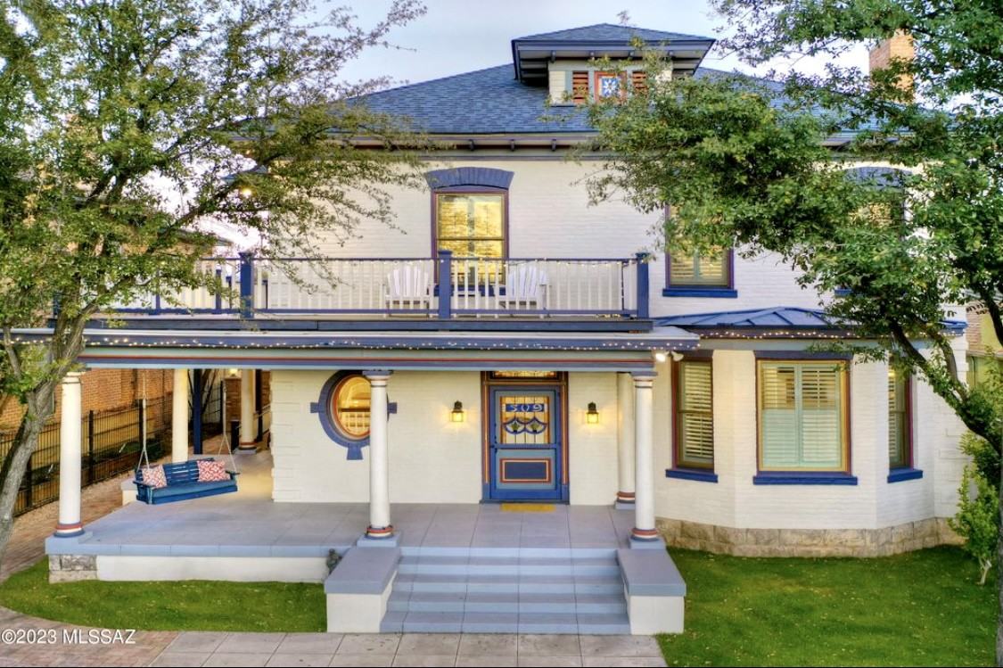 This Magnificent 2-Home gated property is located in the heart of the Armory Park District only 2 blocks from active Downtown Tucson, the Community Center and the Children's Museum. It is also located near all local Hospitals- the U of A- and it is close to I-10 freeway access. This property can be Zoned Residential or Commercial (Very Rare)! BOTH houses and the respective property come secure, with hundreds of features and amenities! The Main house has over 3,800 sq. ft. of living space and the Carriage House has over 1,500 sq. ft. of living space, including walk-in room closets (see Floor Plans). This Beautiful property was originally built in 1902, by Albert Miller, MD, one of two Physician brothers who cared for the Railroad workers during the installation of the Railroad throughout Tucson, AZ in the early 1900’s. Later, the Miller property was sold in an estate sale, and in 2016, the current Owners, who saw its’ amazing potential, purchased the property, and over the last 7 years they have spent over $1,700,000, and extended painstaking effort, restoring and remodeling this property to bring it back to the Grandeur it deserves- all the while ensuring that this Historic property was Technologically brought into the 21st Century. This property has over 30 Security cameras, two Wireless Security Alarm systems, two Wireless high-speed 5G/DSL Internet systems, censor dusk-to-dawn outside lighting, ALL New electric wiring, plugs and switches throughout BOTH houses and ALL New Plumbing throughout BOTH houses. It also has a Large Generac Emergency Gas Back-up Generator that powers BOTH houses during any electric loss, front & back yard DoorBird Gate Security systems, and more! You name it, this property has it! To begin, the two-story Main House is 100% HANDICAP ACCESSIBLE and includes an ADA Bathroom, an elevator lift and a fully covered porch with Wheelchair Ramp. The Main house boasts 11 ft. ceilings throughout both floors, spacious rooms and hallways and original / restored wood flooring, all in keeping with the 1902 original historic design of the home (see Historic Book on property). The Main house has a new Chef's Kitchen on the bottom floor with New top-end appliances including an 8-burner Wolf Range and Ovens, Farber Kassell Dishwasher, Paneled Sub Zero Refrigerator, Custom Cabinetry, Granite Counter tops and Backsplash, Chef Sink, a large Butler Pantry with a bar sink and a Sub Zero wine Refrigerator. Next to the Kitchen is a Sitting room and the ADA Bathroom. The first floor also includes a Butler Pantry with an original stained-glass window, a prep-sink, Sub Zero wine Refrigerator and Tall Custom Cabinetry throughout the room. Also on the 1st floor there is a large formal Dining Room with original Pocket-Doors for privacy, an original Fireplace and an original lighted 1902 Dish Cabinet, all restored. Behind the Dining room there is a 2nd floor downstairs All Marble Bathroom with a walk-in glass shower, Custom Cabinet and Sink and to the right of this Bathroom is a hallway with a door that has the original Stained-glass and tall Storage Custom Cabinetry. Next to the fabulous Dining Room is the large Parlor Living area, also with original pocket-doors for privacy, a Fireplace, and Bay Windows, all restored. Next to the Dining Room there is a small hallway with an original 1902 Chandelier and two Closets, one that houses all of the Main house electronic equipment. Last on the 1st floor is the beautiful Main Foyer with restored S..