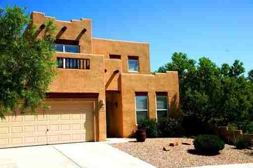 A Southwest Beauty conveniently located near Rust Medical Center, community pools, parks and shopping areas. Semi Custom beautifully detailed, lovely Santa Fe Style amenities including Kiva Fireplace,Viga Beams,upgraded tile, tall windows.Open floor plan for easy gatherings and gracious entertaining. Upgraded appliances includes a double oven. Master Suite on main floor. Master Bath has double sinks,a soaking tub for relaxation and shower glass wall. Front and backyards xeriscaped, Refrigerated Air. Plenty of storage. City Light views. Application Fee is $65, Contact Ruth Hanks, Associate Broker, High Ground Associates, 505-515-5401. Visit our website at www.west2myhome.com This home will not last long!