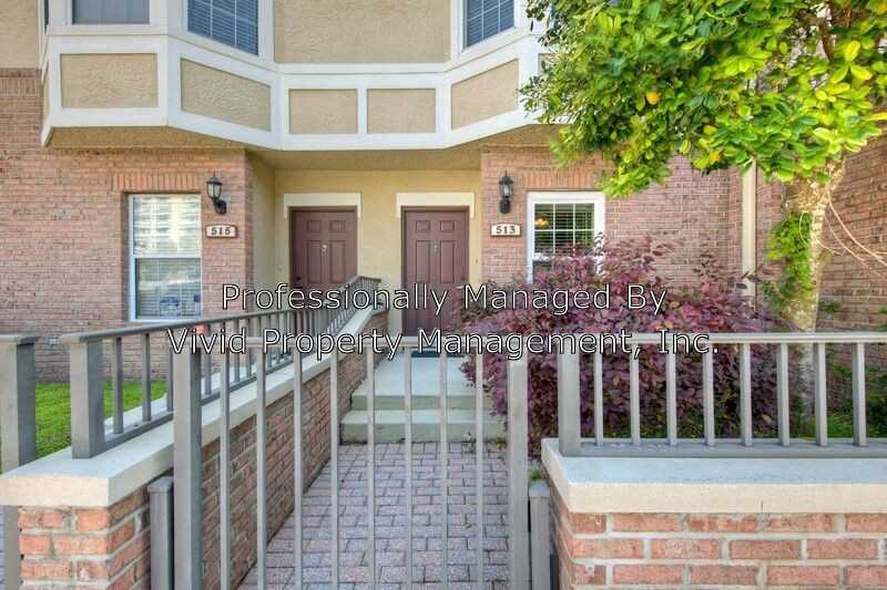 2 bedroom, 2.5 baths (each bedroom has their own private bath) living room/dining room combo with hardwood floors, half bath, balcony off the living room that overlooks the courtyard and pool and clubhouse plus huge bonus room on the first floor. This room could be used as an office or guest bedroom. Park your vehicle in the garage which is inside the gated community. Walking distance to the river, stadiums, restaurants, shopping and more. Beautiful hardwood floors, tile in the bathrooms and kitchen and carpet in the bedrooms and staircases.