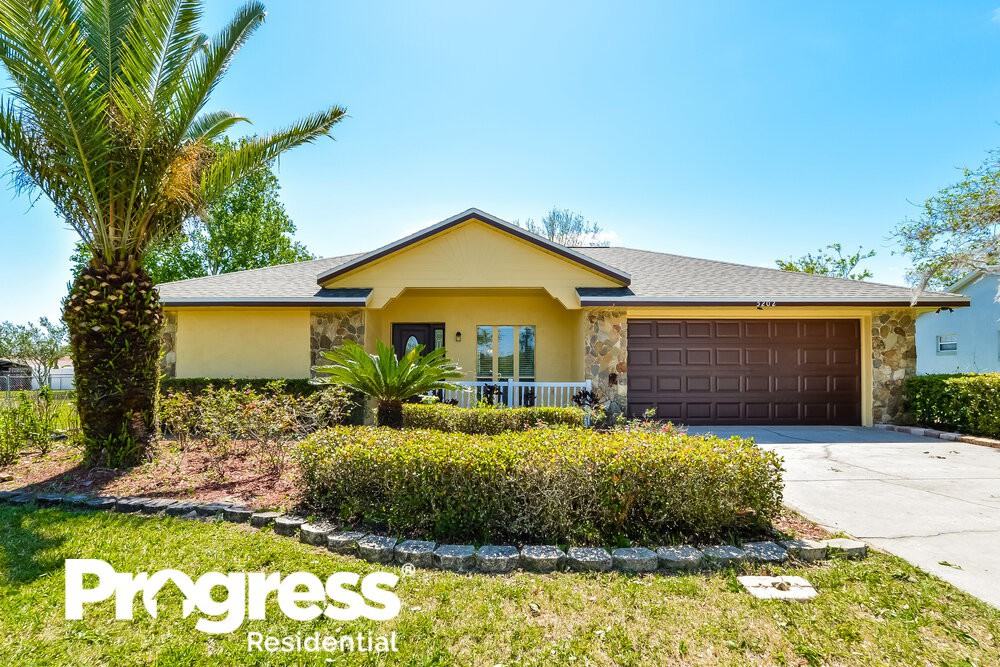 Want to tour on your own? Click the “Show Yourself In” button on this home’s RentProgress. com listing or call (407) 848-1919 to register for a self-guided showing at a time that works best for you. This three-bedroom, two-bathroom renovated rental home in Fruitland Park has myriad amenities! The curb appeal is perfect; the fenced backyard backs up to Lake Griffin in a beautiful neighborhood. Vaulted ceilings, a cooling ceiling fan, and new vinyl plank flooring welcome you to the main living area; a covert desk and built-in shelves peek out from where the formal dining space is open to the main living room. Your handsome kitchen has granite countertops, an impressive backsplash, dark cabinetry, and new stainless steel appliances. The large master bedroom exits to the ubiquitous Florida sunroom at the rear of the home. The sunroom features plentiful blinds and a sliding glass door. Call to see this beauty today!