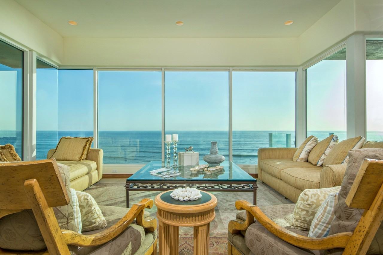 Offered from $42,500 - $60,000. Contemporary world class estate on the Pacific oceanfront in La Jolla, California. Enjoy year round entertainment from the spectacular vantage point of multi-level decks, pool and spa. Soaring glass walls are sited to take in the stunning ocean view, nearby islands and famed southern coastline. This oceanfront Manse boasts a grand entry foyer with open great room, formal dining, breakfast room and gourmet kitchen along with 6 en-suite guest rooms, gym, sauna, home theater and office/library. Housekeeping staff quarters have separate entrance from street, elevator to all floors including the incredible roof-top party deck.