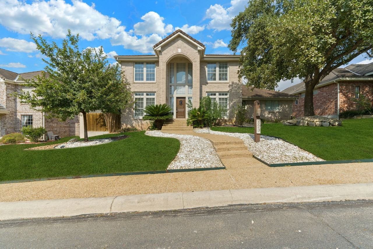 Welcome to your dream home in the desirable Mission Ridge Subdivision! This stunning two-story residence blends spacious comfort with high ceilings and abundant natural light. Entertain in style with a formal dining room right off the entry, perfect for special gatherings, and an office conveniently positioned for work-from-home ease. The inviting living room showcases a charming brick accent wall, complete with a flat-screen TV and surround sound. The kitchen features sleek granite countertops, a central island, decorative backsplash, stainless steel appliances—including a refrigerator—and ample custom cabinets. The first-floor mother-in-law suite includes a double vanity and full bath. Upstairs, enjoy a versatile family room equipped with a full-length entertainment center. Retreat to the master suite, boasting high ceilings, new carpet, a spacious walk-in closet, double vanity, and a large stand-up shower. Outside, relax on the extended patio beside your private pool, surrounded by mature trees and a privacy fence. Conveniently located near major highways, shopping, and dining, this move-in-ready home is designed for the life you’ve been waiting for.