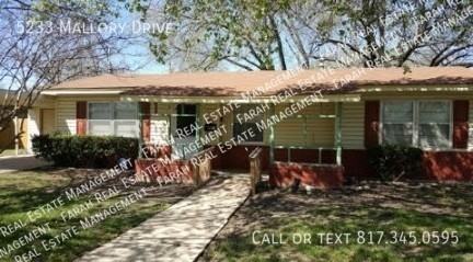 Now available for lease, this 3-bedroom, 1-bath home at 5233 Mallory Dr offers a comfortable single-story layout with central cooling, an attached garage, and a spacious corner lot with plenty of yard space to enjoy. Located in the quiet Browning Heights East neighborhood, the home provides easy access to schools, shopping, parks, and major highways—making it an ideal choice for tenants seeking convenience, comfort, and a well-kept place to call home. For Application submissions: $50 Application Fee per person over 18yrs old. Schedule a self-tour through ShowMojo- REQUIRED before application approval please call (817)345-0595 or go to: moj so 0eda96e05f Property is as-is. Apply online at www farahusa com and include copy of current DL, last 3 months of pay stubs. Contact us for our Pet Policy.