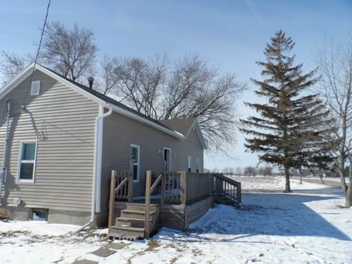 This country property is situated on .83 acres surrounded by corn fields! Two bedrooms and an office, laundry room, ceramic wood tile in foyer and kitchen area. 4 season room with abundance of windows to view corn field and wild life. Pet friendly home. A 2 car attached garage, circle drive and neat landscaping ! Electric averages $60 per month. Propane heat.