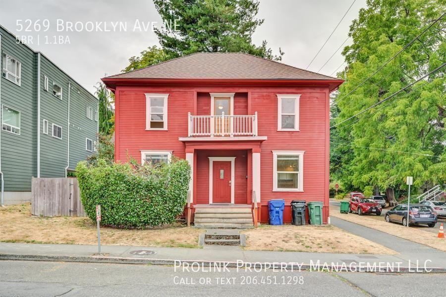 5269 Brooklyn Ave NE, Seattle, WA 98105 Available for Fall prelease! Located in the heart of UW! Please DO NOT CALL: Email to schedule tour or for more pictures/information! Lease on this home includes NO access to unit balcony! Well-maintained 5BR/1.5BA/1,980sqft house, available 9/12! NEWER laminate floors for stairs and all 2nd Fl BRs (installed 2022), plus NEWER laminate floors on 1st Fl (installed in 2021, except Kitchen/BA)! Access to private cement patio and fully-fenced Back Yard shared with neighboring unit (under same management), Utility Room with in-unit Washer/Dryer in basement. Walk score “Walker's Paradise” (96 out of 100): Close to UW campus, U Village, shopping, restaurants, coffee shops, and bus stops! Street parking available. * Tenant responsible for all utilities (water/sewer/garbage/electric/gas) and Internet * $4,700.00 per month, 1,980sqft: 5BR, 1.5BA, Kitchen, Living Rm, Dining Rm * 1st Floor: 1BR, ¾ BA, Kitchen, Living Room, Dining Room * 2nd Floor: 4BR, ¾ BA * See more pictures: https photos app goo gl X6amUGzuP8y9Emsz9 * The information above has been given to us by the Owner or sources that we deem reliable. We have no reason to doubt its accuracy, but we do not guarantee it. Prospective tenants should carefully verify all information contained above * Address: 5269 Brooklyn Ave NE, Seattle, WA 98105 * Available 9/12 * No Smokers, No Pets * Terms: Minimum 12 months; NO summer-only, short-term, or month-to-month leases. 1st Month's Rent and Last Month's Rent due at lease-signing; refundable Security Deposit equaling half of one month's rent due at start of lease * Satisfactory credit check, background check (where applicable), and rental references required for all applicants and expected co-occupants aged 18 and over; non-refundable application fee (as charged by screening agency) is $45.00 + tax per applicant * No deposits accepted until application is processed and approved * Leased by Prolink Property Management, LLC, 14670 NE 8th St, Ste 168, Bellevue, WA * Equal Opportunity Housing: We are pledged to the letter and spirit of U.S. policy for the achievement of equal housing opportunity throughout the Nation. We encourage and support an affirmative advertising and marketing program in which there are no barriers to obtaining housing because of race, color, religion, sex, handicap, familial status, or national origin