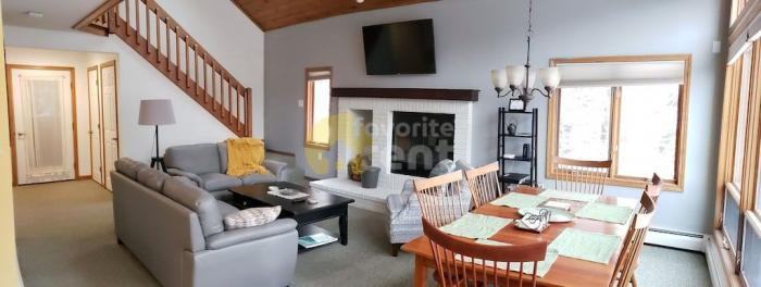 This well decorated property is cozy, yet airy with a beautiful fireplace, cathedral ceilings, and open plan. This 2800 square feet condo has 5 wonderful bedrooms: 2 with queen beds, 2 with king beds and one with single and bunk bed. There are 4 bathrooms, living room, dining with seating for 8 people and fully stocked kitchen. Talking about other areas of the house, there are deck/patio, balcony and outdoor play area. There are 2 parking spaces with additional parking in overflow lot. -- LID 45002856