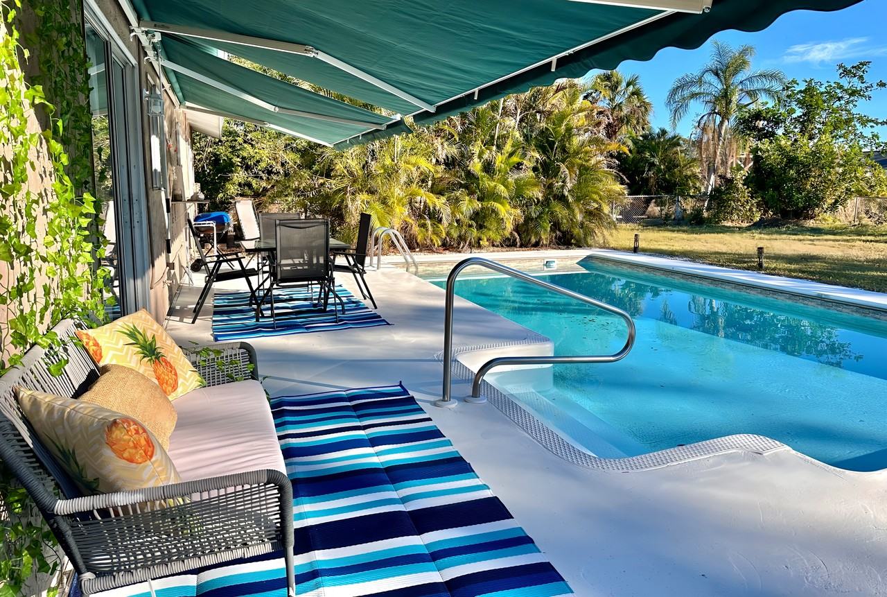 Welcome to our pool house in North Port! We invite you to relax and enjoy your time in this modern, cozy, fully furnished and stocked home away from home. Spend the day soaking up the sun by the pool; or have a short drive to the beach or a day trip to historic Venice; or take a 2 minute walk to McKibben park, that hosts a basketball court, tennis court, racquetball courts, playground, a canoe/kayak launch and fishing. The house is very centrally located to all the amenities North Port has to offer, including warm mineral springs, golf course, aquatic center, major shopping and more! The Space features: ~ 3 bedrooms and 2 full bathrooms ~ 1 king bed, 1 queen bed, and a bunk bed with 1 full and 1 twin beds ~ Fully stocked and equipped kitchen with all the cooking essentials including coffee maker, toaster, blender, pots and pans, utensils and more! ~ Spacious poolside area to soak up the sun or have a meal, with an oversized fenced backyard for the kids to run around ~ 50" smart TV in the living room, 2 smart TVs in the bedrooms. High speed internet. No cable. ~ Washer and dryer in the garage ~ two off street parking spots ~ Pets are welcome, for an additional one-time non-refundable cleaning fee of $150 (does not cover damages caused by the pet) and a refundable pet deposit of half month rent. Rent includes all utilities, high speed internet (wifi), pool cleaning and maintenance, and landscaping. Refundable security deposit is half month rent. ANY QUESTIONS, FEEL FREE TO CALL/TEXT AT (941) 236-0377 VLAD Location Location Location! ~4 mi/ 8 min drive to the Warm Mineral Springs ~16 mi/28 min drive to Manasota key beach; or 23 mi/30 min drive to Nokomis beach ~1.7 mi/ 4 min drive to Heron Creek Golf Club ~ 0.3 mi/3 min walk to McKibben park ~ 3.8 mi/8 min drive to North Port Aquatic Center ~17 mi/ 29 min drive to Historic Downtown Venice ~ 19.5 mi/ 25 min drive to Sarasota Memorial Hospital, Venice ~ 9.4 mi/21 min to Fawcett Memorial Hospital, Port Charlotte ~ 5.7 mi/ 11 min drive to Fawcett Memorial Hospital ER, Port Charlotte