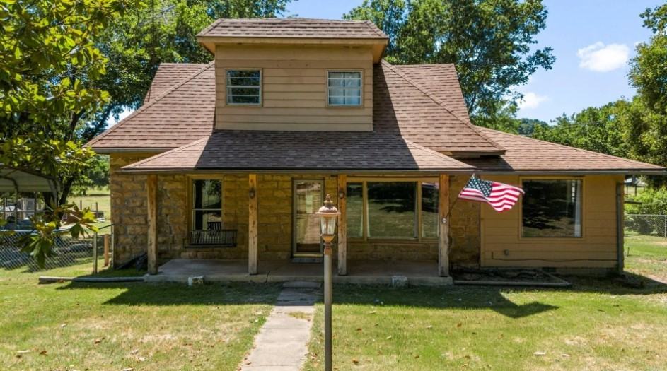 This beautiful native stone farmhouse just outside Cleveland, Oklahoma has 3 bedrooms and 2.5 bathrooms. The nice open concept first floor has a large living room, dining room, kitchen, laundry room and a full bathroom. The master bedroom is also on the first floor with another full on-suite bath and a large walk-in closet. The kitchen includes stainless steel sink, large oven, gas cooktop, solid wood cabinets, granite countertops, a dishwasher and vinyl plank flooring. There are two additional bedroom areas on the second floor, each with their own walk-in closet and a shared half-bath. Propane gas fireplace downstairs and an electric fireplace upstairs along with window units for air conditioning. Covered front and back porches. Large fenced in front yard. Two car carport. Spacious fire pit area in the backyard to enjoy the beautiful views. The house is 1936 sq ft and sits on almost an acre. On the property is a large storage shed. Dogs and cats allowed. Additional 20x20 fenced area on property and can be used for goats or chickens. No utilities included. Available for move in on September 1, 2024. $1,250/month rent. First month rent and $1,250 security deposit required before move in and $250 pet deposit required for dogs and cats. 12 month lease required. No smoking policy inside the home. Please submit the form on this page or contact Clint Hewitt at 918-231-5166 to learn more.