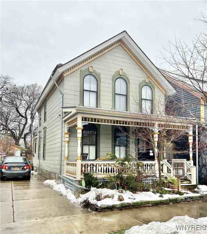 Open concept & fully remodeled 3+ bed 1.5 bath Allentown beauty with central air & off street parking for 2+ cars close to Kleinhans Music Hall, Buffalo's Medical campus and Peace Bridge. Walk up the covered front porch and through a wide entryway leading to large living room with floor to ceiling windows, wood flooring, recessed lighting, gas stove fireplace & huge storage closet. Dining area with chandelier opens to wonderfully updated kitchen with loads of cabinets and storage, stainless steel appliances, wall oven, induction stovetop & enormous kitchen island that comfortably seats 6 and makes for a great workspace. 1st floor is finished off with side entry mudroom, a lovely half bath & sliding glass door overlooking the fully fenced yard with wood deck & storage shed. 2nd floor boasts cork flooring, hallway laundry with folding tables & storage cabinet, 3 generously sized bedrooms, office (could be used as 4th bedroom), full bath with heated marble tile floor, double sink vanity with storage, large soaking tub & walk-in shower. Rent includes water & garbage. Credit and background check required with application.