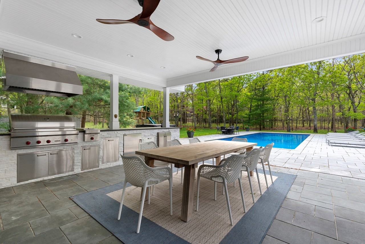 Rental Reg # 24-1045 Your Summer oasis awaits. Situated minutes away from both Sag harbor and East Hampton Villages and it's beaches, this renovated 4 bedroom and 4 bathroom with Pool and basketball is ready to embrace all the fun that summer has to offer. The gourmet kitchen features Silverstone countertops, a new Viking stove and Bosch dishwasher, and overlooks the dining area large enough to seat family and guests as they enjoy one of the two gas fireplaces. There are two en-suite bedrooms with renovated bathrooms as well as two other bedrooms and a shared bathroom on the main floor. There is also a large living/family room with its own gas fireplace and patio doors that flow seamlessly to the outdoor space. It's all about the outdoor living as this home boasts an expansive resort style covered blue stone patio which features a commercial grade outdoor kitchen with a Wolf grill and side burner, Sub-Zero outdoor refrigerator, ice maker, granite countertops, wine fridge and a covered seating and bar area with LED lighting, a television and ceiling fans. Some of the other bonus features include the 20' x 40' heated pool with saltwater filtration system and outdoor shower, and a basketball court for the occasional one on one. The finished lower level offers bonus areas and additional family room with TV and full bathroom. Come see for yourself and make this home your summer paradise.