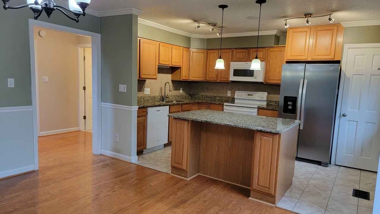 This end unit property at 5438 Ring Dove Ln Unit D1, Columbia, MD 21044, is a three-level end-unit townhouse that features 3 bedrooms, 2 full bathrooms, and 2 half bathrooms, encompassing approximately 2,060 square feet of living space. The home offers a bright kitchen with granite countertops, newer appliances, and access to a balcony. The family room includes a wood-burning fireplace and opens to a deck and fenced backyard with a storage shed. The master bedroom boasts a walk-in closet. Additional features include hardwood and luxury vinyl flooring, recessed lighting, and built-in storage. The property also includes an attached carport with extra storage space. Nearby schools include Running Brook Elementary, Wilde Lake Middle, and Wilde Lake High School. The townhouse is located in downtown Columbia. Walking distance to 2 lakes, with very nice trails and views. The mall and Whole foods is around .5 miles.