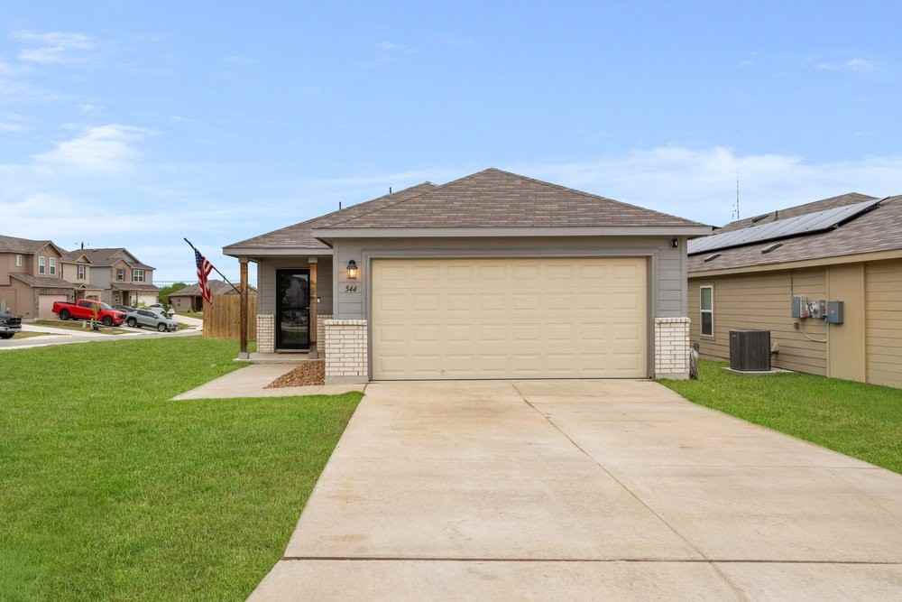 Check out 544 Havarti Way in New Braunfels, TX, a charming property offering a unique living experience. This intimate community consists of 2 units, each boasting a spacious 3-bedroom floorplan spanning approximately 1402 square feet. Inside, you'll appreciate the open floor plan and dining area, perfect for entertaining. As a pet-friendly property, your furry friends are welcome too! Enjoy a range of amenities, including a balcony patio, central heat, on-site laundry, dishwasher, garage, and walk-in closet. With long-term rentals offered, make this house your home and experience the best of New Braunfels living. One of the standout features of this property is its open floor plan, perfect for those who value a seamless living space.