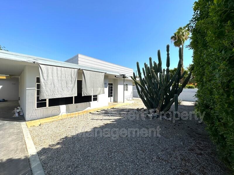 Mid century modern 2 bedroom/1 bath unfurnished duplex unit available for long term lease in Palm Springs. This unit features a large living dining room with fireplace and large windows. Kitchen with all appliances included and separate entrance to the side yard. Bathroom with newer vanity and Stackable washer/dryer hookups. New paint and blinds throughout with all tile flooring. Fenced patio in the front with two car tandem carport parking on the side of the house. No shared walls makes this property feel like a single family rather than a duplex. Landscaping services included in the rent. Tenant to pay all utilities. All applicants must pass a comprehensive background screening including income verification and landlord references. Renter's insurance is required. All applicants must have the following: monthly income of three times the monthly rent, no prior evictions, good rental history, no previous felonies, and an acceptable credit score. If you see this home advertised online for less than the rental amount quoted here, the ad is a SCAM. We are the only authorized agent for this property. Please email us a link to any bogus or fraudulent ads so we can report it to the appropriate authorities. Please do NOT send money to anyone who offers keys in exchange for a deposit check - especially if they are out of state. When in doubt, please feel free to contact us.